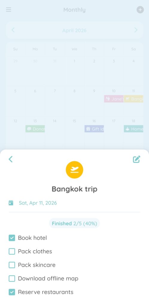 This one changed everything. Most planners let you create events. But life isn’t just events, it’s details. And details are what we forget. Instead of just adding an event to a specific date, I add a to-do list inside the event. For example: